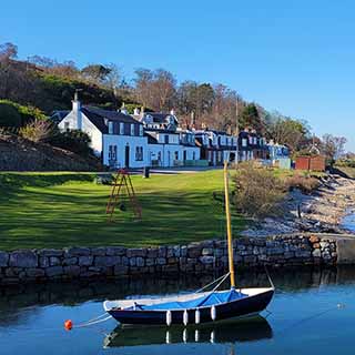 Rockview Cottage is a traditional detached island property, quietly situated in the pretty conservation village of Corrie on the east coast of Arran. Tucked away behind picturesque coastal houses and accessed by footpath, it enjoys an elevated outlook over the Clyde and offers character and comfort throughout the year.
